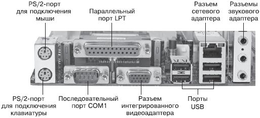 На рис. 1.4 показана задняя панель типичной системной платы с разъемами портов. Подробнее о настройке портов см. в гл. 9.