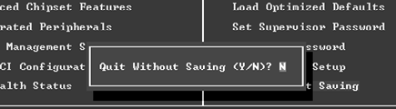 Для выхода с отменой внесенных изменений выберите в главном окне команду Exit Without Saving, после чего обычно появляется окно с сообщением Quit Without Saving (Y/N)? (рис. 3.4), в котором нужно нажать клавиши Y и Enter. Вы выйдете из BIOS Setup, а компьютер продолжит загрузку.