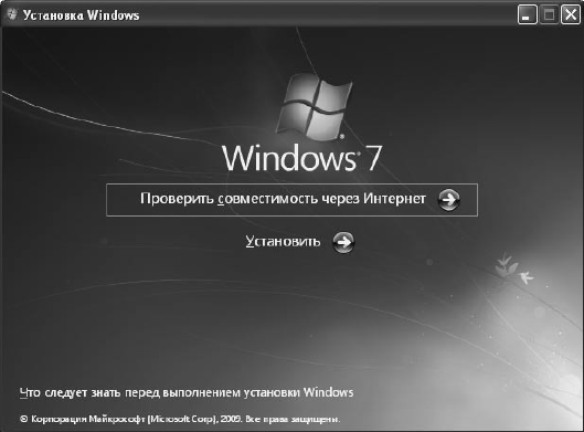 Находясь в старой версии Windows, вставьте в DVD-привод установочный диск Windows 7 и дождитесь появления окна, изображенного на рис. 1.11. Щелкните на ссылке Установить и пройдите этапы, описанные в предыдущем разделе. Единственное отличие возникнет во время выбора места установки.