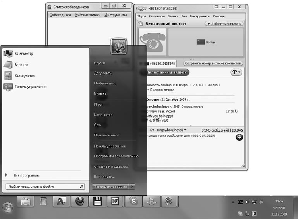 В Windows 7 сохранилась функция стандартного переключения между окнами с помощью сочетания клавиш Alt+Tab: на полупрозрачной панели появляются эскизы окон, а не их значки (рис. 2.4).