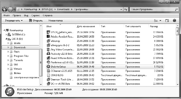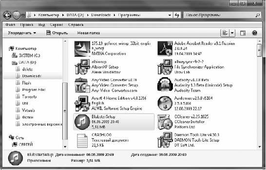 Рис. 3.11. Представление файлов и папок в виде Содержимое