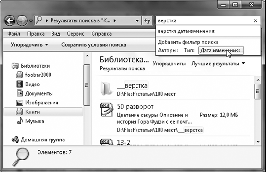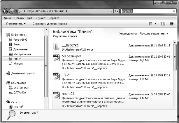Рис. 3.14. Результат поиска файлов в библиотеке Книги