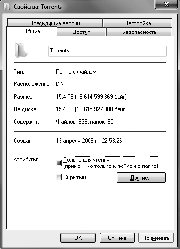 Рис. 3.22. Окно свойств папки