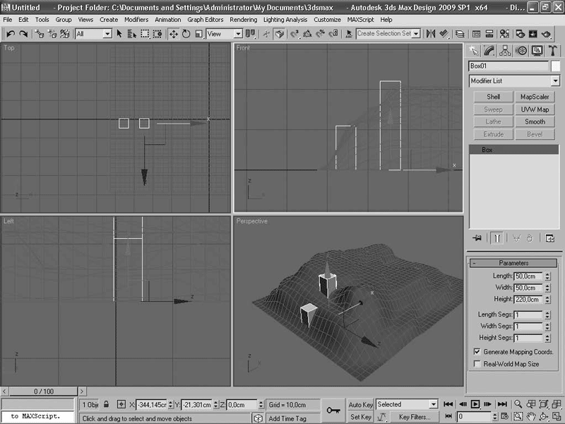 Любая архитектура, будь то здание или малая архитектурная форма, возводится на земле, то есть на ландшафте. В зависимости от местности это может быть равнинный, холмистый или горный ландшафт, с возвышенностями и водоемами, скальными выступами и береговой чертой моря. Задача при построении такого ландшафта – выбрать правильный способ моделирования, чтобы максимально сэкономить ресурсы и дифференцированно смоделировать весь объем ландшафта с необходимой детализацией. Есть достаточно много путей смоделировать ландшафт, включая использование специального программного обеспечения вроде ProSite или подобных ему программ. Но наша задача – строить по возможности всё в 3ds Max, тем более что в нем достаточно много подходящих для этой цели инструментов и способов. Давайте рассмотрим некоторые из них, а потом выберем наиболее подходящий для наших задач.