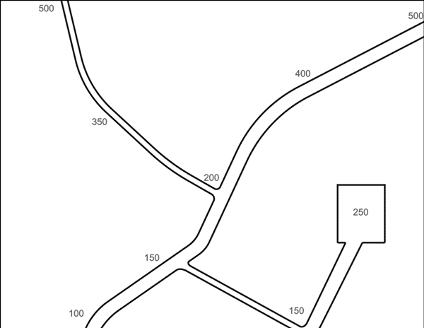 Для начала рассмотрим небольшой гипотетический план местности, представленный в виде изолиний с картой высот (рис. 1.1).