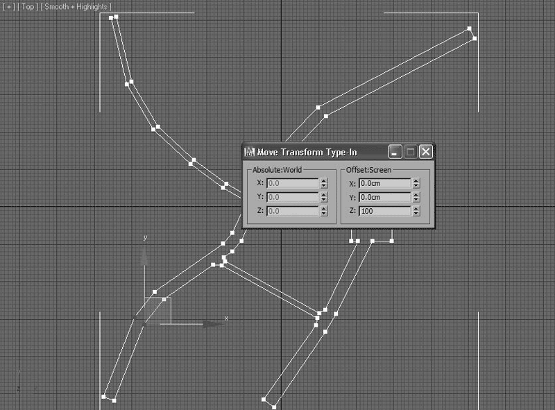 Теперь, выделяя группы вершин, соответствующие той или иной отметке высот, поднимите их по оси Z в окне просмотра Top (Вид сверху) на нужную высоту. Для этого лучше воспользоваться точным клавиатурным вводом числовых значений, щелкнув правой кнопкой мыши на инструменте Select and Move (Выделить и переместить) панели инструментов (рис. 1.29).
