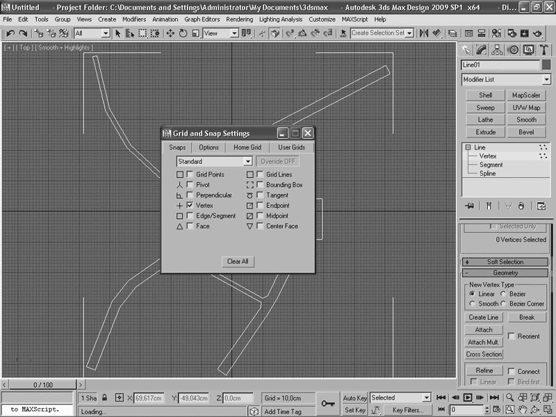 Осталось создать собственно сам ландшафт. Выполните команду Tools ? Grid and Snaps ? Grid and Snap Settings (Сервис ? Сетка и привязки ? Настройка сетки и привязок) и установите привязку к вершинам (рис. 1.31).