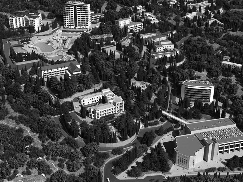 Необходимую плотность сетки, а также ее сглаженность и прочие нюансы можно создавать и редактировать уже известными вам инструментами полигонального моделирования. Достаточно сложный ландшафт, показанный на рис. 1.35, создан именно этим способом в точном соответствии с генпланом.