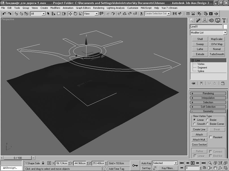 Рис. 2.2. Создание сплайновой формы дорожного полотна