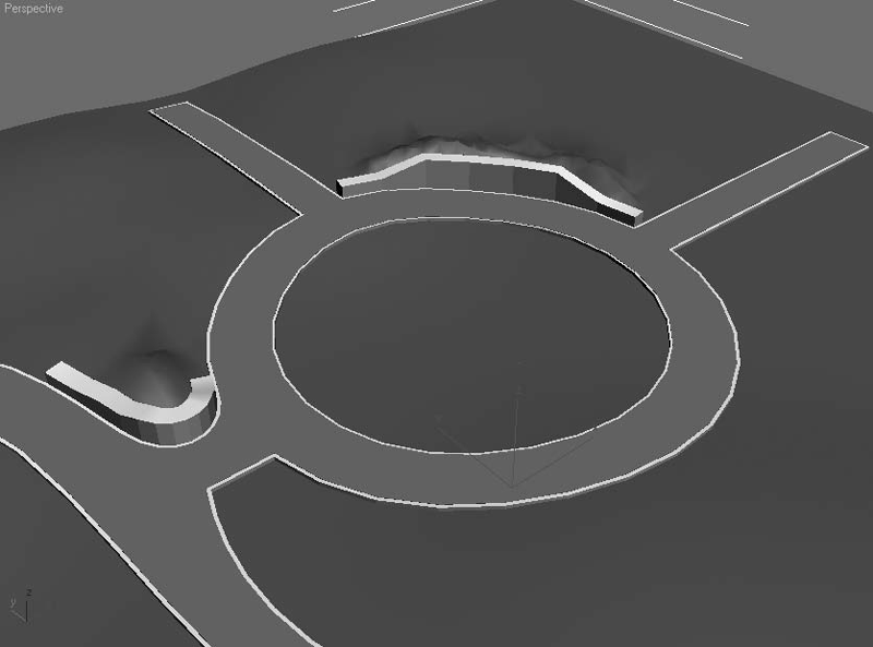Безусловно, не обойтись без ручной доработки полученного результата, но основная работа сделана буквально за несколько щелчков кнопкой мыши. При необходимости полотно дороги корректируется вручную методом полигонального моделирования.
