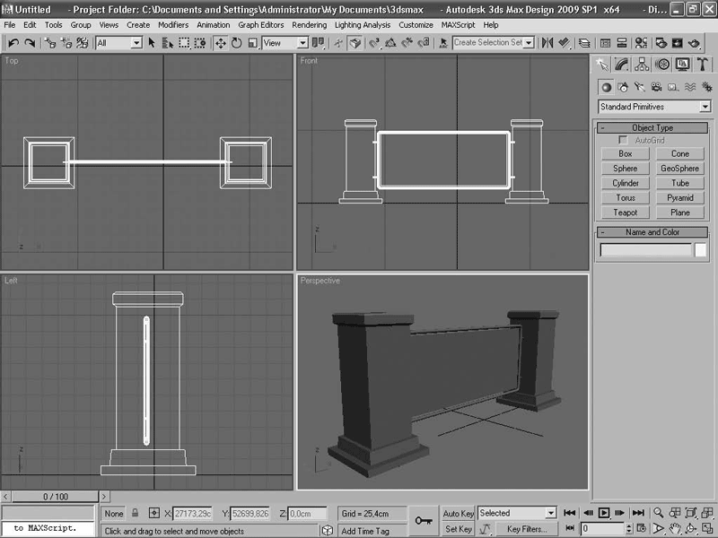 Рис. 2.22. Создание сцены ограды
