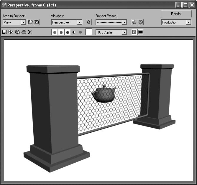 Правда, для ближнего плана они смотрятся не очень выигрышно, но для средних и дальних вполне приемлемы. Ограды и заборы для ближнего плана лучше все же моделировать полигонами или визуализируемыми сплайнами.