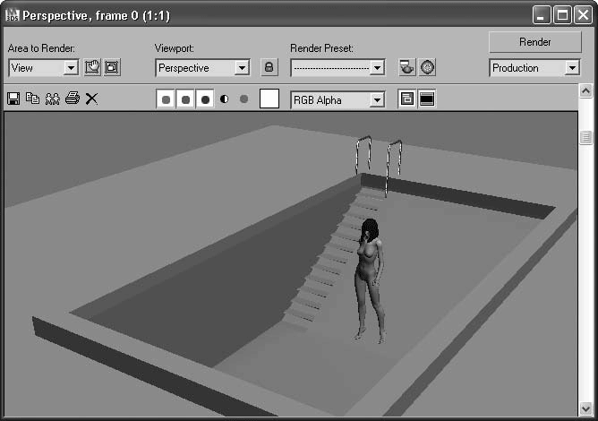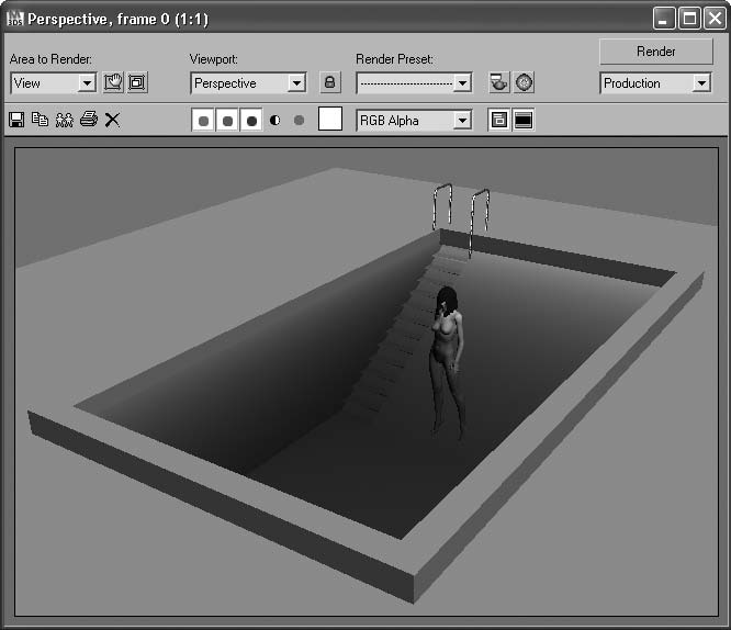 Визуализируйте сцену. Теперь вода приобрела некоторую характерность и бассейн получил ощущение наполненности и глубины (рис. 2.29).