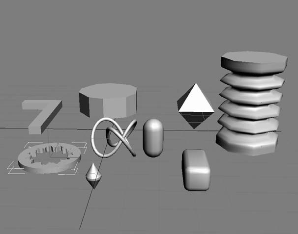 Следующая разновидность – создание моделей на основе параметрических примитивов. Обычно в программах для трехмерного моделирования имеется набор простых объектов, таких как сфера, куб, цилиндр и т. п. Примитивы могут иметь и более сложную форму, например срезанный куб, узел, октаэдр и т. п. Это так называемые улучшенные примитивы (extendedprimitives) (рис. 1.10). Форму этих объектов можно отредактировать, к примеру, с помощью модификаторов.
