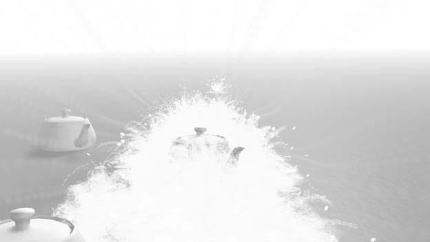 Рис. 1.15. Для реализации данного эффекта использовались инструменты из набора Space Warps (Объемные деформации) и системы Particle Flow (Поток частиц)