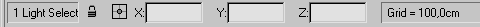 Строка состояния находится в нижней части окна программы (рис. 2.25). В левой ее части расположено поле, отображающее количество выделенных объектов. Правее находятся кнопки блокировки выделенного набора объектов и ввода абсолютных значений преобразования. Кроме того, строка состояния включает в себя поля отсчета координат и поле отсчета шага сетки.