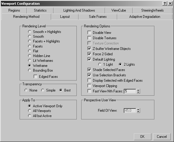 Рис. 2.29. Диалоговое окно Viewport Configuration (Конфигурация окон проекции)