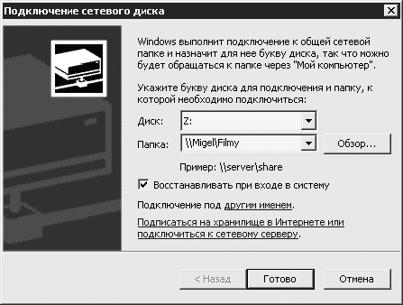 Вид окна подключения сетевого ресурса в Windows XP показан на рис. 2.6.