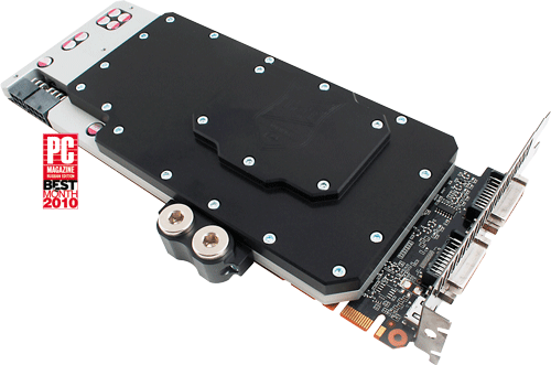 Летом 2010 г. компания Point of View начала сотрудничать с TGT GmbH – немецкой группой, специализирующейся на индивидуальном разгоне и тонкой настройке графических адаптеров. Результатом этого союза стал выпуск платы POV/TGT GeForce GTX 480 «BEAST» JetStream с водяным охлаждением, названной «самым быстрым решением на платформе NVIDIA Fermi». Микросхемы, которые идут на создание графических адаптеров этой серии, отбираются участниками группы TGT «вручную». Только выдержавшим серьезнейшее тестирование ГП под силу работать в режиме, существенно превосходящем по нагрузкам штатный: частота ядра – 810 Гц, шейдерных блоков – 1620 МГц, видеопамяти DDR5 – 3800 МГц. Возможен и дальнейший разгон, благодаря автономной системе водяного охлаждения JetStream. Автономной в том смысле, что дополнительные водоводы и помпы тут не требуются. Никелированная медная пластина, пронизанная множеством тончайших каналов с водой внутри, отбирает с поверхности ГП тепло, которое затем рассеивается на выносном алюминиевом радиаторе со 120-мм тихим вентилятором. В результате теплоноситель нагревается всего на 4 °C при мощности теплорассеяния 300 Вт.