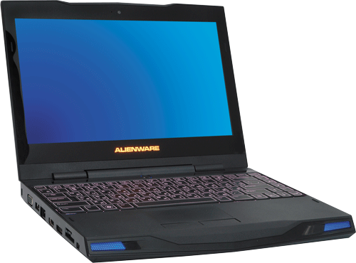 Выглядит M11x внушительно и добротно. Сложная форма корпуса, скошенные плоскости на крышке, подсвеченные синими светодиодами «дюзы» по краям переднего торца и впрямь навевают ассоциации с истребителем пришельцев из «Дня независимости». Усиливает впечатление и характерная для всей серии Alienware яйцевидная голова ксеноморфа (с подсветкой!) над клавиатурой и на крышке, а также светящаяся оранжево-желтым надпись ALIENWARE прямо под дисплеем. Экран с разрешением 1366?768 вместе с рамкой прикрыт листом глянцевого пластика – видимо, для защиты от неизбежных при частых транспортировках невзгод. Трудно сомневаться в том, что такой компьютер будут покупать именно ради возможности играть где и когда угодно.