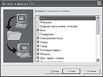 Рис. 2.3. Окно выбора данных адресной книги для экспорта
