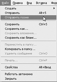 Рис. 2.40. С помощью команды Отправить позже вы помещаете письмо в папку Исходящие
