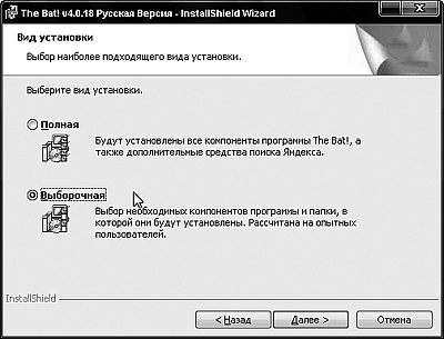 Рис. 2.57. В этом окне вы выбираете комплектацию The Bat! и задаете нужный путь установки