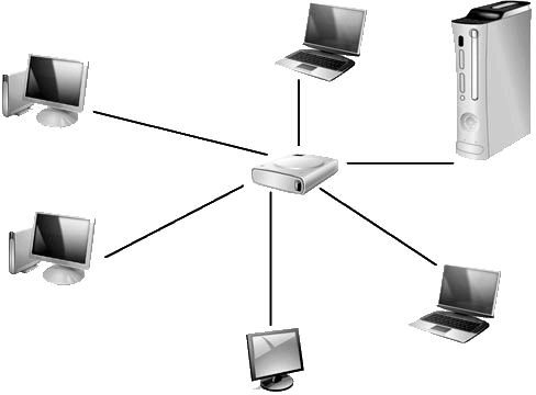 В случае с более интеллектуальным узлом, например коммутатором, данные одновременно могут передаваться сразу несколькими компьютерами, что значительно увеличивает скорость передачи данных.