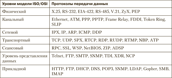 Таблица 6.1. Популярные протоколы модели ISO/OSI