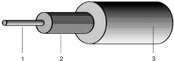 Основная деталь оптоволоконного кабеля – оптоволокно, или, как его еще называют, световод (1), по которому непосредственно и передается световой сигнал. Чтобы сигнал не уходил из световода, вокруг последнего располагается отражающая оболочка (2) толщиной 125 мкм и, наконец, оболочка (3), которая защищает кабель от внешних воздействий, например влаги или солнечных лучей.