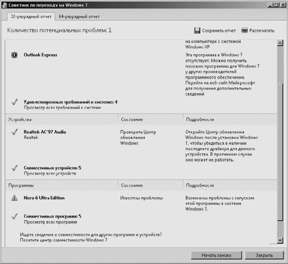 Рис. 1.2. Отчет Советника по переходу на Windows 7