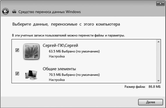 3. Найдите и запустите файл migsetup.ехе. Дождитесь появления специального окна переноса файлов и параметров. Нажмите кнопку Next (Далее) и выберите подходящий способ переноса (рис. 1.8).