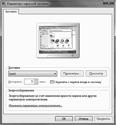 Рис. 2.12. Окно настройки параметров экранной заставки