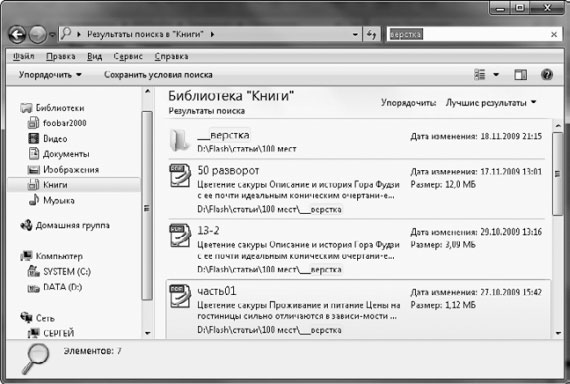 Рис. 3.14. Результат поиска файлов в библиотеке Книги