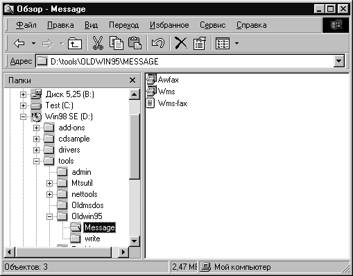 Рис. 4.3. Файлы WMS.EXE и AWFAX.EXE находятся на компакт-диске Windows 98 CD
