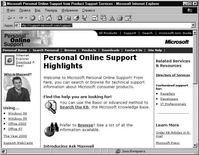 Рис. 4.4. Если вы не знаете номера искомой статьи в базе знаний Microsoft, обратитесь к странице поиска по адресу http://support.microsoft.com/support/
