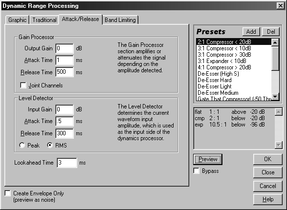 Рис. 2.14. Вкладка Attack/Release диалогового окна Dynamic Range Processing