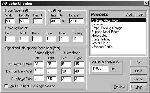 Рис. 2.23. Диалоговое окно 3-D Echo Chamber