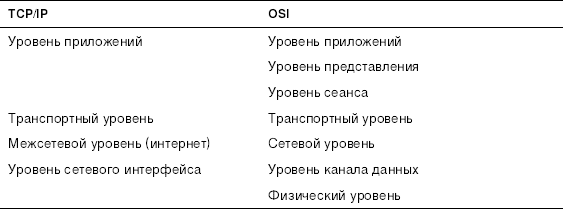 Таблица 3.4. Соответствие модели TCP/IP и модели OSI