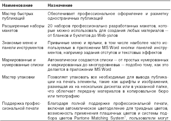 Таблица 1.1. Стандартные свойства программы MS Publisher 2002[4]