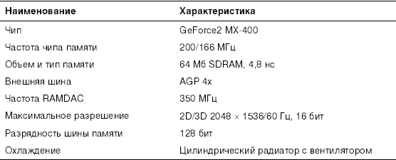 Использование видеокарт на чипе GeForce2 МХ-400 с видеопамятью 32 Мб является сегодня популярным решением. В табл. 2.1 показаны характеристики данного устройства.
