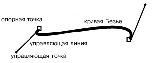 Прямая или ломаная линии создаются щелчками мыши в начале и конце рисуемого отрезка. Криволинейный контур формируется несколькими опорными точками (узлами), соединенными сегментами (кривыми Безье). Непосредственно с опорной точкой связаны управляющие линии, являющиеся касательными к кривой в опорной точке. Управляющие линии заканчиваются управляющими точками, перемещение которых позволяет менять кривизну сегмента (рис. 1.24).