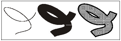 В CorelDRAW с помощью линий (прямых, ломаных, кривых) создайте абстрактные образы. Линии должны вызывать определенные ассоциации: опасность, текучесть, пробуждение, уныние, надежность и т. д. Усильте эти образы, придав контурам вид мазка кисти нужного типа (рис. CD-1.30).
