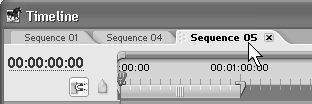1. Откройте фильм Sequence 05 в окне Timeline (Монтаж) щелчком на соответствующей закладке.