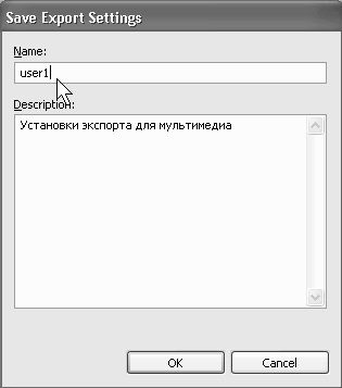 4. В открывшемся диалоговом окне Save Export Settings (Сохранить установки экспорта) введите имя новой предустановки в поле Name (Название) и, по желанию, ее краткое описание в поле Description (Описание) (рис. 4.17).