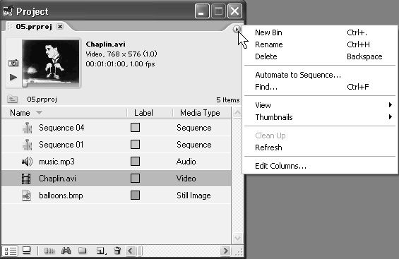 ? Find (Поиск) – осуществляет поиск клипов или корзин в окне Project (Проект) по их названию или его части;