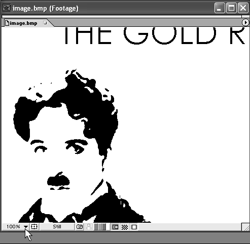 Рис. 3.24. Для статических клипов изменение размера окна Footage служит в целях отображения той или иной области рисунка