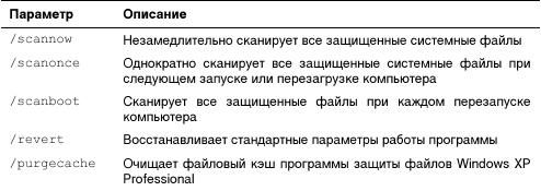 В справочной системе Windows ХР Professional говорится, что параметр /purgecache очищает файловый кэш программы защиты файлов Windows ХР Professional и немедленно сканирует все защищенные системные файлы. Однако, если выполнить команду sfc /purgecache, можно убедиться, что процесс сканирования этой командой не запускается, а лишь происходит очистка файлового кэша, т. е. удаление всех файлов из каталога %systemroot%system32dllcache.