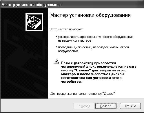 В том случае, если устройство не определяется автоматически, вы можете воспользоваться Мастером установки оборудования (рис. 2.14).