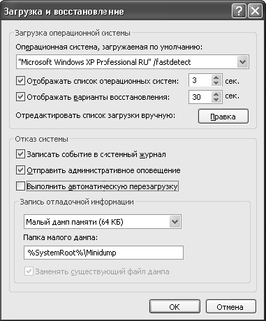 Рис. 2.22. Параметры загрузки и восстановления Windows ХР Professional